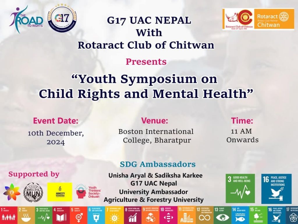 We are excited to announce "A Youth Symposium on Child Rights and Mental Health" Co-organized with G17 UAC Nepal University Ambassadors for Agriculture and Forestry University! This event will unite […]